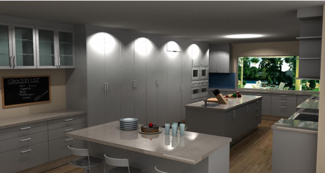 In the attached picture, you can see that the auto lighting is too close to the tall cabinets.