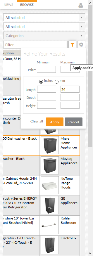 Frankly, as for the cloud, in a production environment it’s just not good enough. There’s enough “pretty stuff” that’s nice to add but not essential to design a kitchen, but not enough meat and potatoes like appliances that are critical to being able to design. Even catalogs like GE are missing items so even when we find a brand that you have a catalog for, it’s not there…