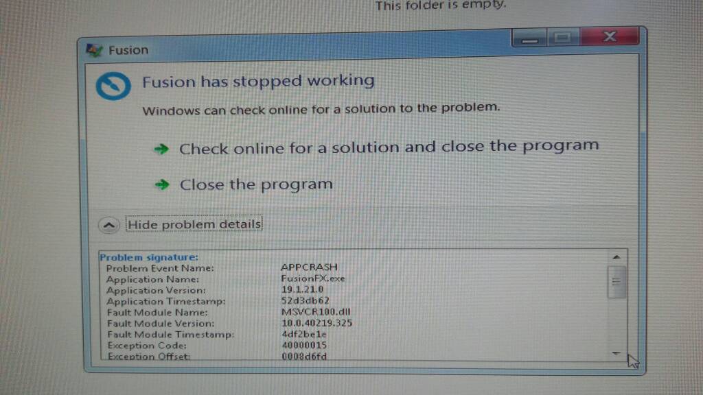 Yesterday, i had a system crash and the 2020 Fusion Fx App is not opening.Now, when i m trying to open the 2020 Fusion Fx. I m getting a message that, Fusion has stopped working.