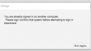 “You are already signed in on another computer. Please sign out from that system before attempting to sign in elsewhere.”