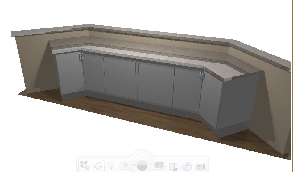 2) Use a running line to make the shape you want then right click on it, choose Make 3D and make it a countertop. Again, lift it to the height of the wall and adjust the points that make the countertop up until you are happy.
