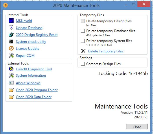 2) You will have to do a 2020 registry reset – this will lose all your preferences so you have to put them back in after. First go through all your preference settings and note down what they are (I screencap each page and print them out). Now go to All Programs, Design, Tools, Maintenance Tools and click on 2020 Design Registry Reset.