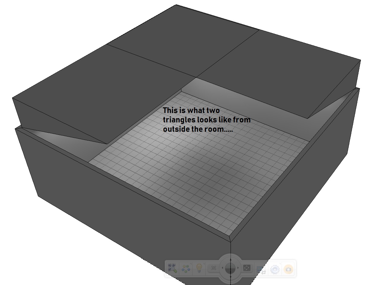The angled side becomes your ceiling, and the rest of the triangle is floating above the room.